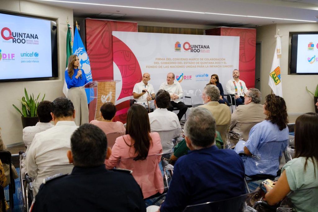 Cancún.– En un paso firme hacia la protección integral de la niñez y adolescencia, el gobierno de Quintana Roo y el Sistema DIF estatal firmaron un convenio de colaboración con el Fondo de las Naciones Unidas para la Infancia (UNICEF), con el propósito de fortalecer acciones orientadas al respeto, garantía y promoción de los derechos de niñas, niños y adolescentes.