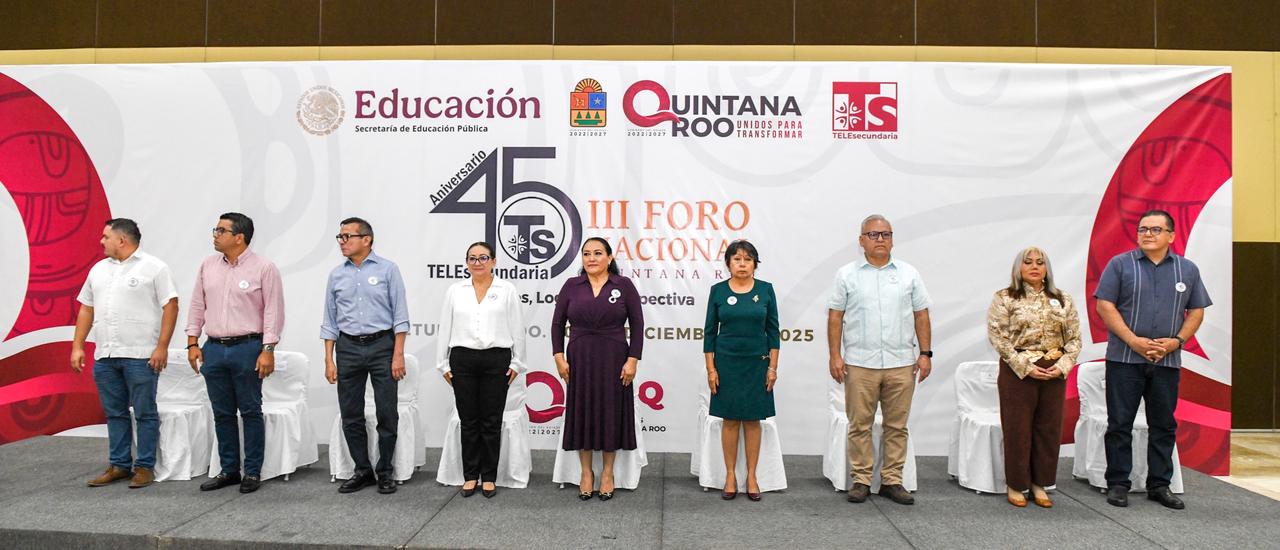 Chetumal.- La secretaria de Educación, Elda Xix Euán, en representación de la gobernadora Mara Lezama Espinosa, inauguró el Tercer Foro Nacional “45 años de educación telesecundaria: retos, logros y perspectivas”, con la finalidad de generar un espacio de diálogo, reflexión y construcción colectiva sobre los logros, retos y perspectivas de la educación telesecundaria, en el marco de su 45 aniversario en Quintana Roo, para fortalecer su papel en la Nueva Escuela Mexicana y en la transformación social de las comunidades.