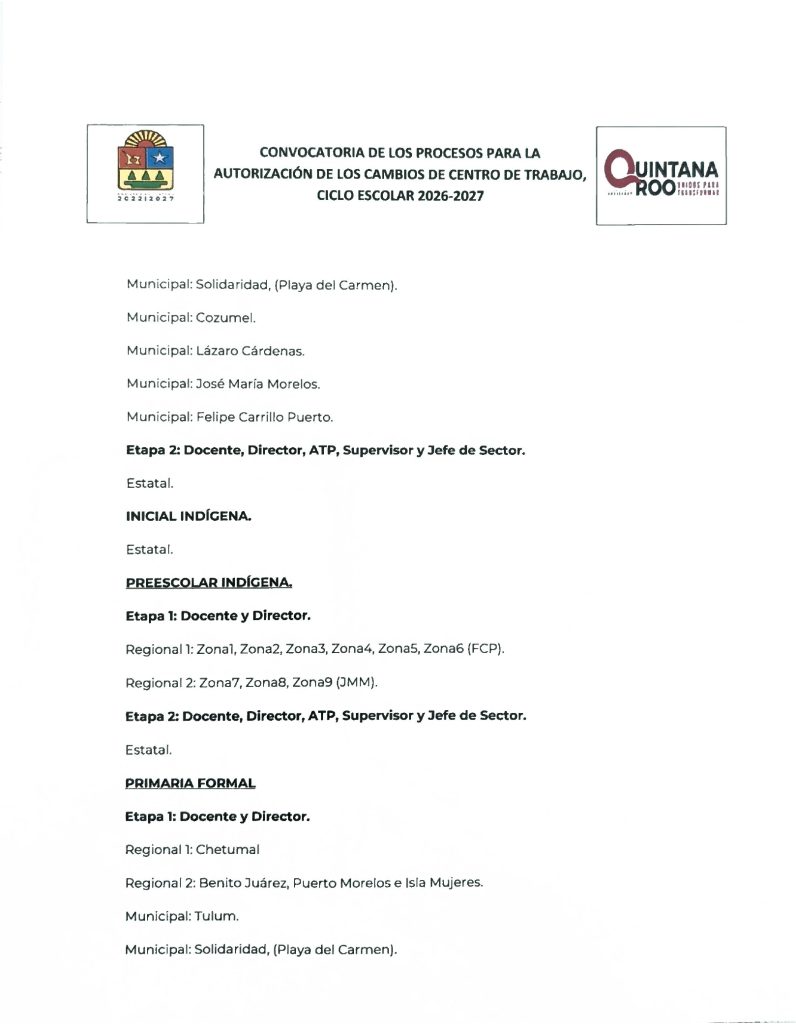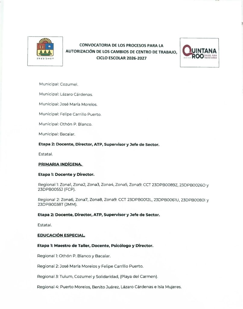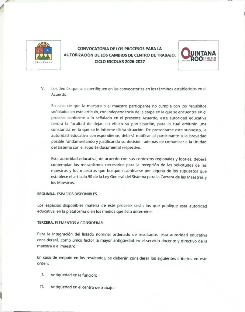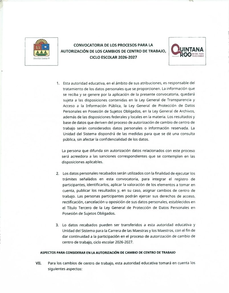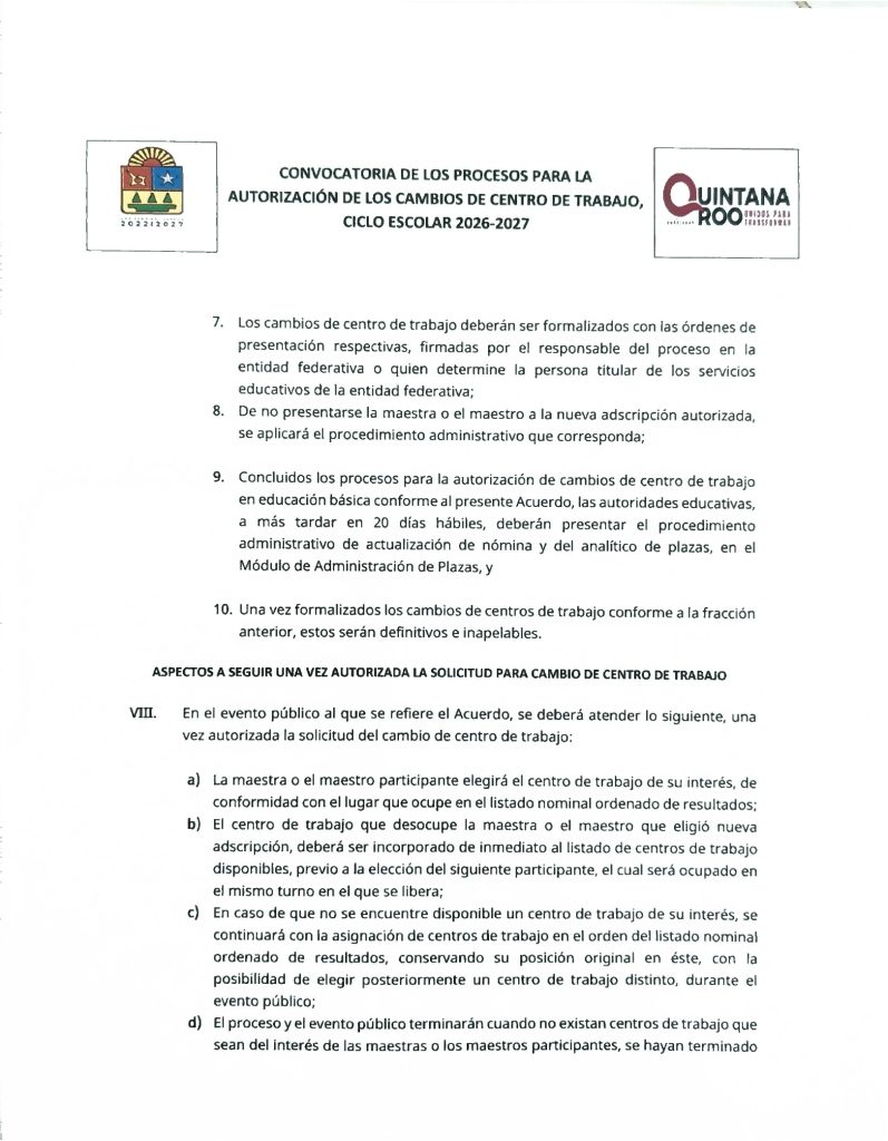 Convocatoria de los Procesos para la Autorización de los Cambios de Centro de Trabajo Ciclo Escolar 2026-2027 Quintana Roo 14/01/202612/01/2026 por Comunicación Social SEQ