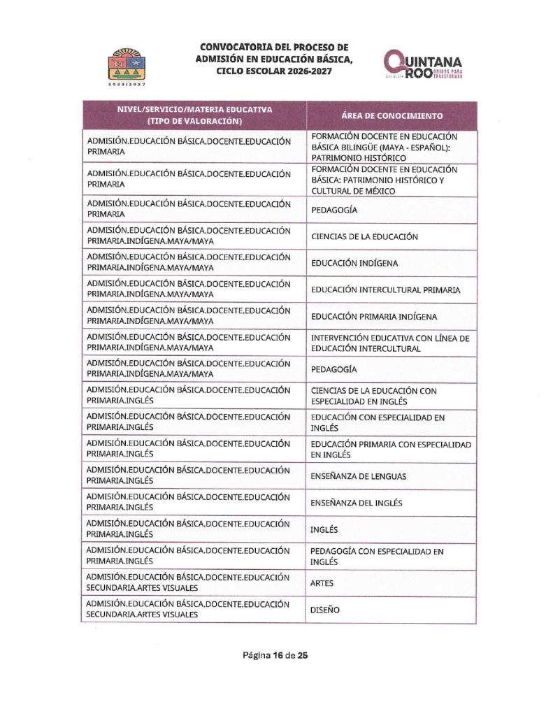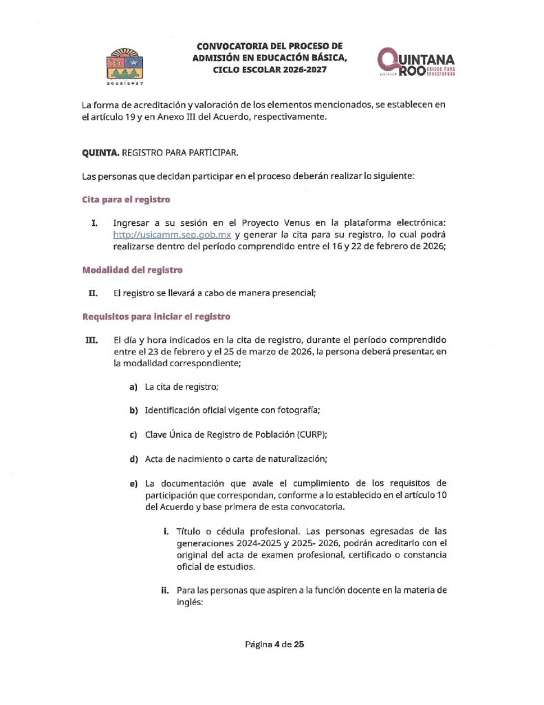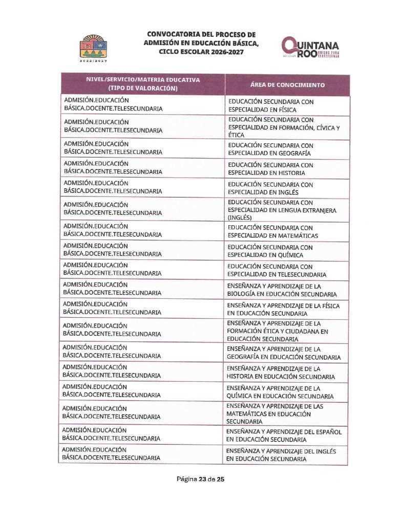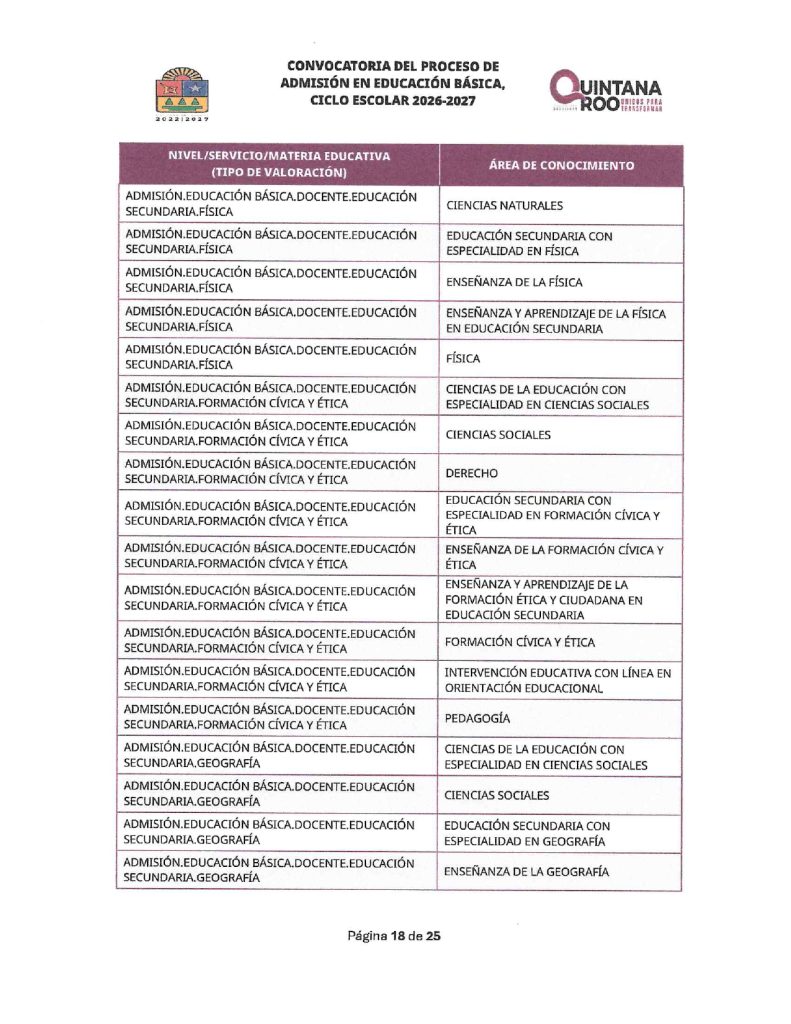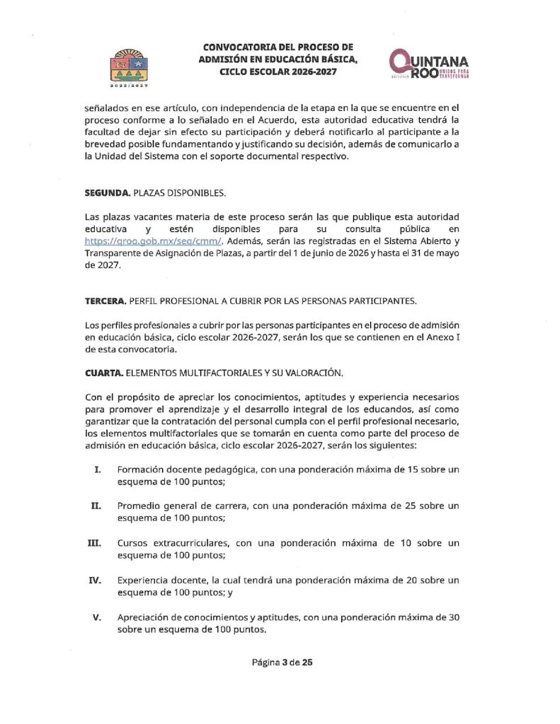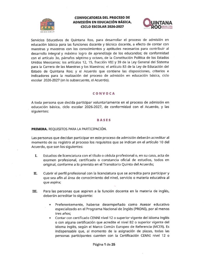 Convocatoria del Proceso de Admisión en Educación Básica Ciclo Escolar 2026-2027 Quintana Roo 02/02/202602/02/2026 por Comunicación Social SEQ PLAZAS VACANTES PARA LA CONVOCATORIA DEL PROCESO DE ADMISIÓN EN EDUCACIÓN BÁSICA, CICLO ESCOLAR 2026-2027 | FECHA DE PUBLICACIÓN: 2 DE FEBRERO DE 2026