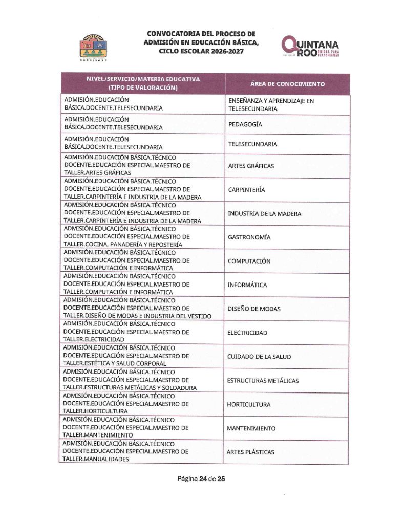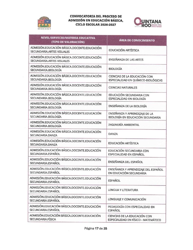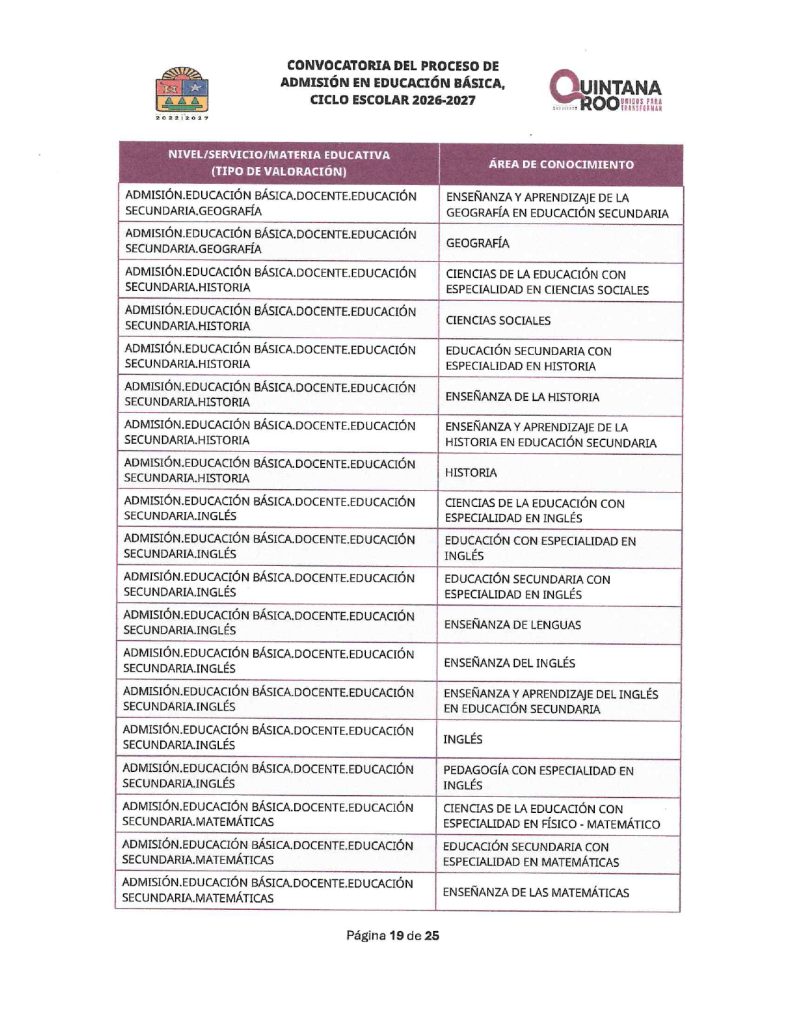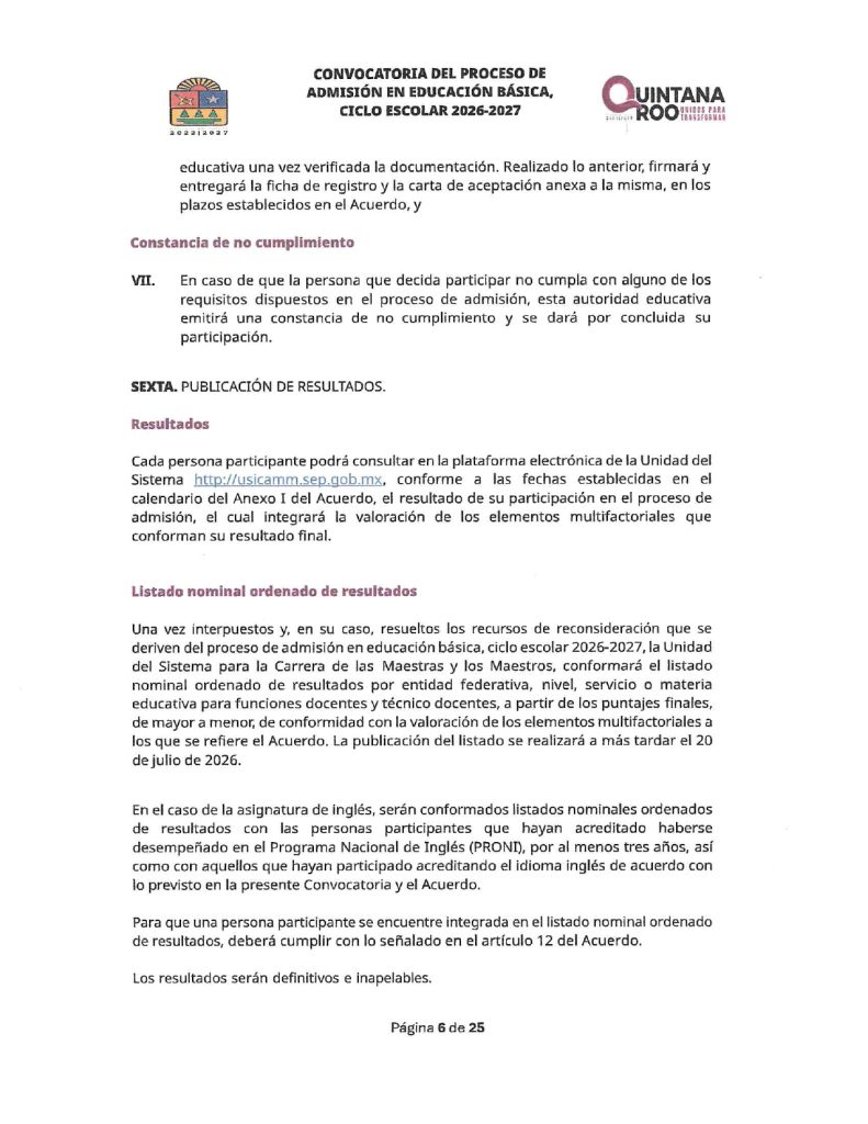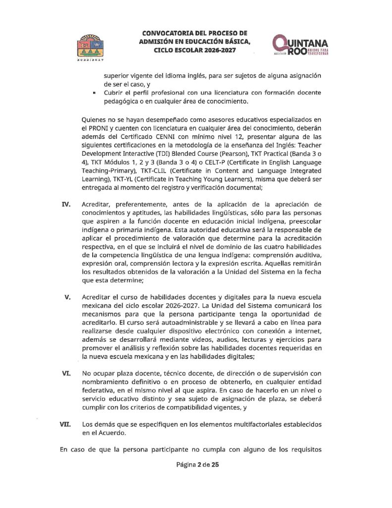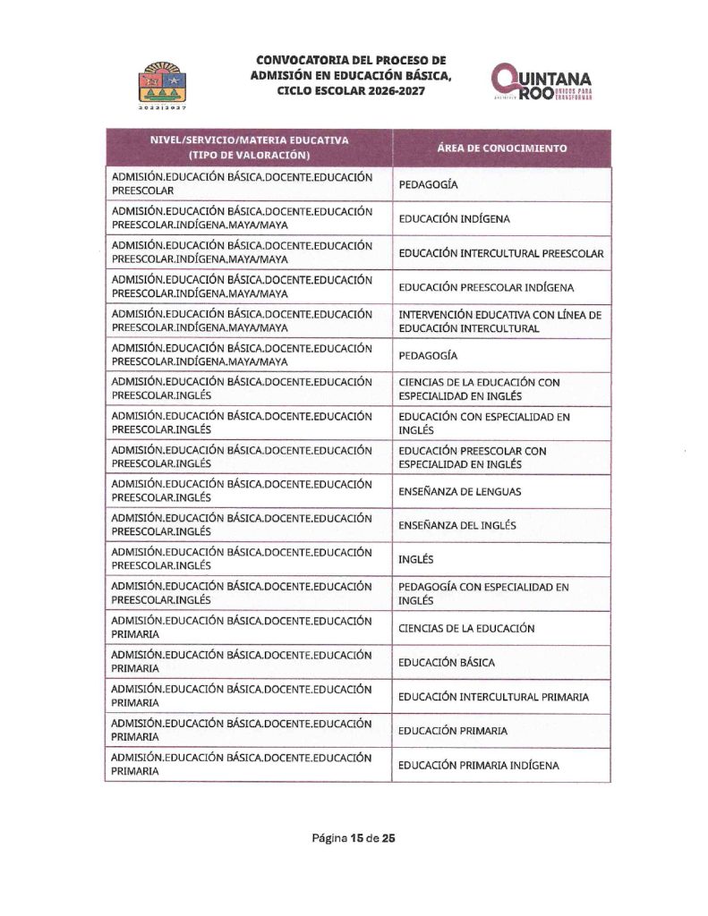 Convocatoria del Proceso de Admisión en Educación Básica Ciclo Escolar 2026-2027 Quintana Roo 02/02/202602/02/2026 por Comunicación Social SEQ PLAZAS VACANTES PARA LA CONVOCATORIA DEL PROCESO DE ADMISIÓN EN EDUCACIÓN BÁSICA, CICLO ESCOLAR 2026-2027 | FECHA DE PUBLICACIÓN: 2 DE FEBRERO DE 2026