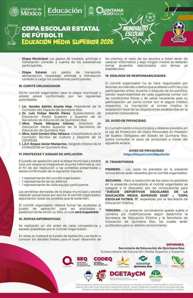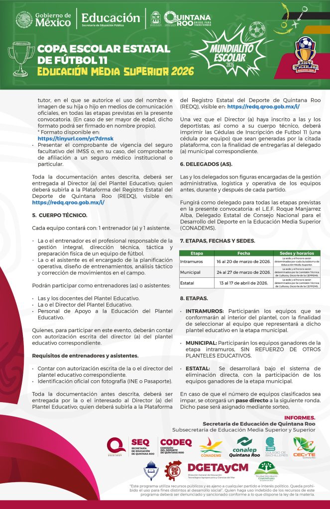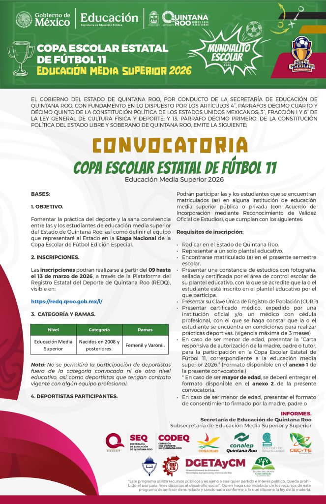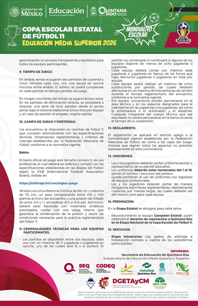 Copa Escolar Estatal de Fútbol 11 Educación Media Superior 2026 03/03/202626/02/2026 por Comunicación Social SEQ