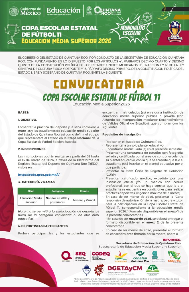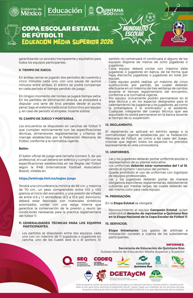 Copa Escolar Estatal de Fútbol 11 Educación Media Superior 2026 26/02/2026 por Comunicación Social SEQ