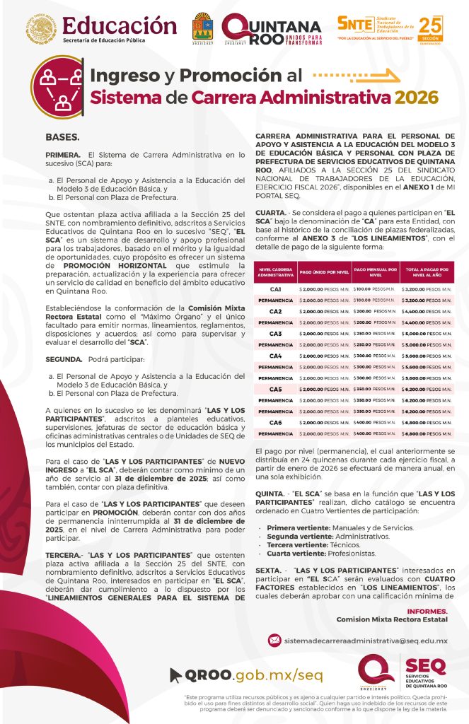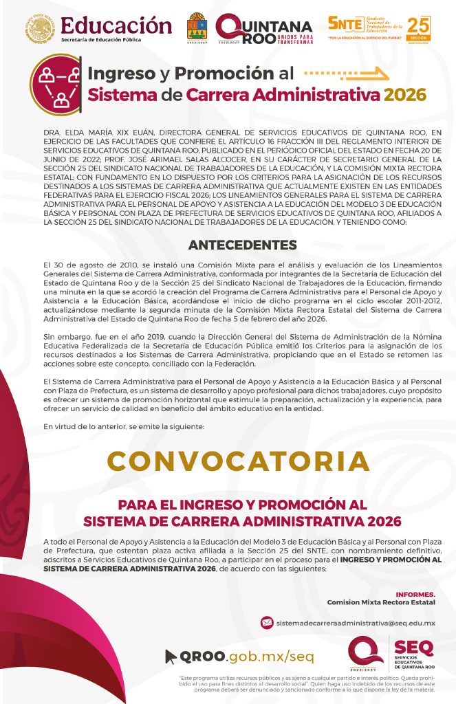 Convocatoria para el Ingreso y Promoción al Sistema de Carrera Administrativa 2026 27/02/2026 por Comunicación Social SEQ