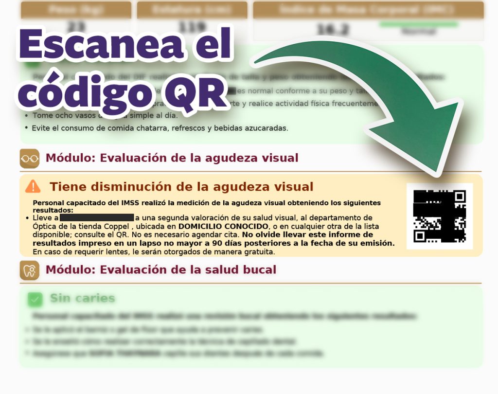 Si en la escuela ya evaluaron la vista de tu hija o hijo, revisa el informe de resultados y escanea el código QR para conocer la clínica que les corresponde. 🏥✅